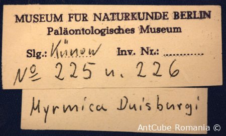 Noul gen a fost descris de la o femelă înaripată completă și de la patru lucrători, toți lucrătorii fiind conservați într-o poziție ondulată, blocând detalii în general, se estimează că femela ar fi fost în jur de 5,5 mm în timp ce lucrătorii variază între 4 și 5 mm. Indivizii de A. duisburgi au capete aproape pătrate, fiind doar puțin mai lungi decât lați, și ușor mai lați în spate decât în față. Indivizii au ochii mici, foarte convecși în formă care sunt plasați în apropierea marginii din spate a capsulei capului și complet lipsiți de oceli. Mandibulele sunt scurte și rotunjite, și au 5 dinți inegali. Antenele sunt compuse din treisprezece segmente, terminalul trei formând o formă distinctă. Capul și toracele au o structurare puternic reticulată la exoschelet și având o colorare complet neagră. Agroecomyrmex poate fi separat de Eulitomyrmex pe baza caracteristicilor capului, Agroecomyrmex afișând mandibule mai mari și antene mai mici.